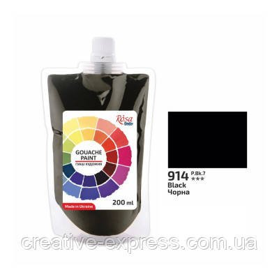 Фарба гуашева, Чорна, 200мл, ROSA Studio