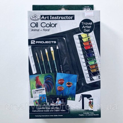 Набір олійних фарб, ArtCreation, Combiset, 12*12мл, мольберт, полотно 24х30, пензлі – 2шт, Royal Tal