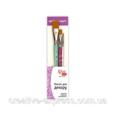 Набір пензлів №4 ДЛЯ ДЕКОРУ, синтетика кругла та плоска, 4шт (№0,4,18,26), ROSA TALENT