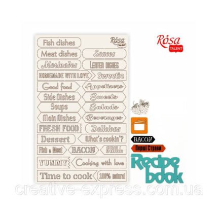 Чіпборд для скрапбукінгу „Recipe book“ 3, білий картон, 12,6х20 см, ROSA TALENT