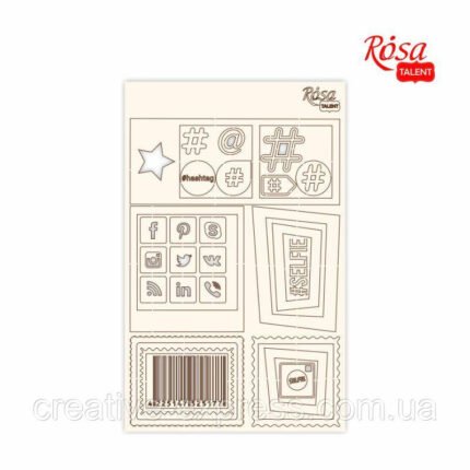Чіпборд для скрапбукінгу Класичний „Рамки та піктограми“, білий картон, 12,6х20см, ROSA TALENT