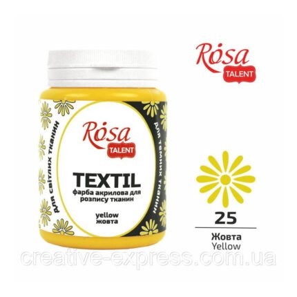 Фарба акрилова для тканин, жовта (25), 20 мл, ROSA TALENT