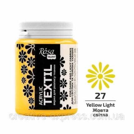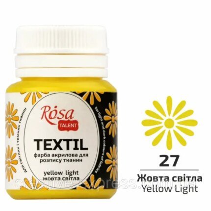 Фарба акрилова для тканин, Жовта світла (27), 20мл, ROSA TALENT