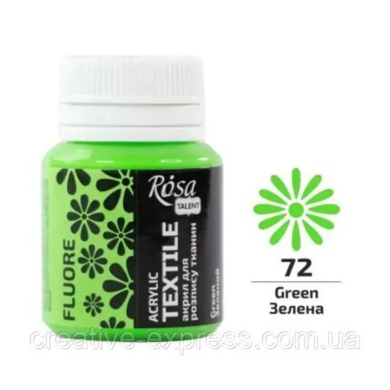 Фарба акрилова для тканин, Зелена, флуоресцентна, 20 мл, ROSA TALENT