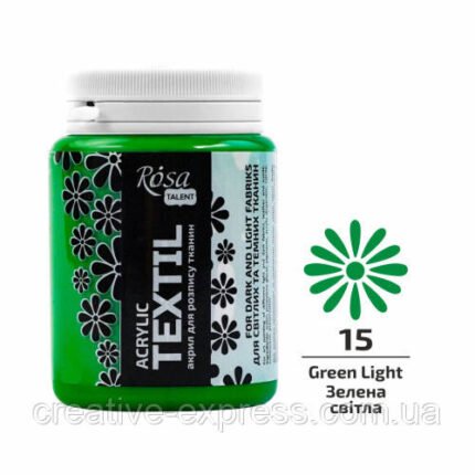 Фарба акрилова для тканин, Зелена світла (15), 20мл, ROSA TALENT