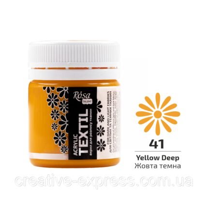Фарба акрилова для тканин, Жовта темна (41), 20 мл, ROSA Talent