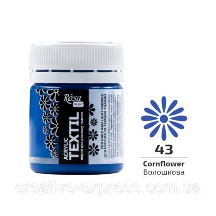 Фарба акрилова для тканин, Волошкова (43), 20 мл, ROSA Talent