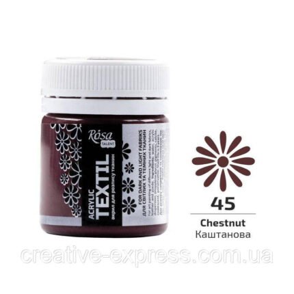 Фарба акрилова для тканин, Каштанова (45), 20 мл, ROSA Talent