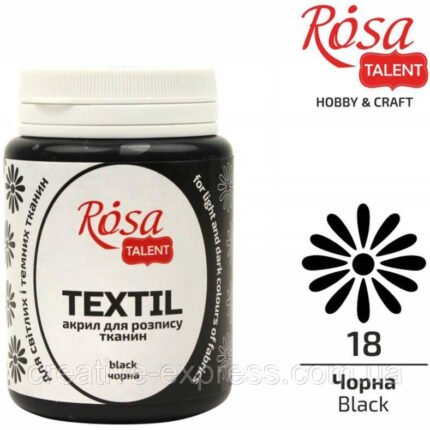 Фарба акрилова для тканин, Чорна (18), 80мл, ROSA TALENT