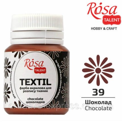 Фарба акрилова для тканин, Шоколад (39), 20 мл, ROSA TALENT