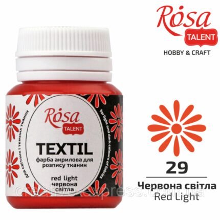 Фарба акрилова для тканин, Червона світла (29), 20мл, ROSA TALENT