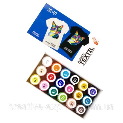 Набір акр.фарб для розпису тканин CAT, 18кол., 20мл, ROSA TALENT