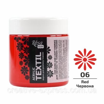 Фарба акрилова для тканин, Червона (06), 150мл, ROSA Talent