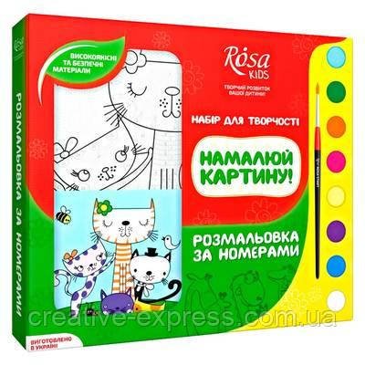 210 грнНабір, розмальовка за контурами Малювалка, „Дівчинка та кошенятко“, 20х30 см, ROSA KIDS