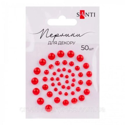 Набір перлин самоклейних червоних, 50 шт.