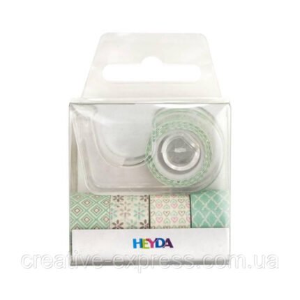 Набір паперових скотчів, “Зелена пастель” з пластиковим диспенсером, 12мм*3м, 5 шт., Heyda
