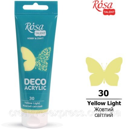 Акрил для декору, Жовтий світлий, матовий, 75 мл, ROSA TALENT