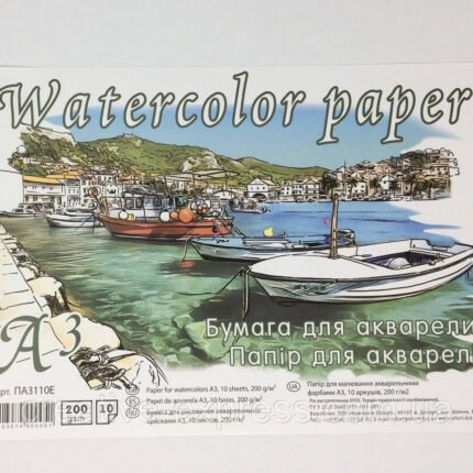Папір для акварелі А3 10 аркушів (200г/м2) в п/п пакеті ПА3110Е