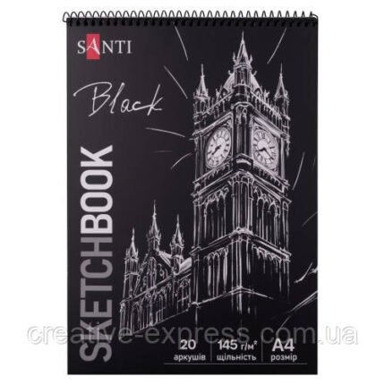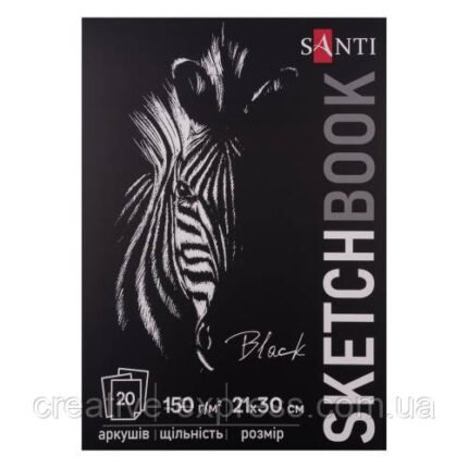 Скетчбук SANTI для графіки, з чорним папером, А4, 20 арк., склейка, 150г/м2