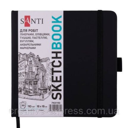 Скетчбук SANTI для графіки, 18х18см, 80 арк., тверда обкладинка PU, 110г/м2, чорний