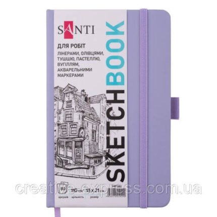 Скетчбук SANTI для графіки, 16х23см, 80 арк., тверда обкладинка PU, 110г/м2, фіолетовий кількість