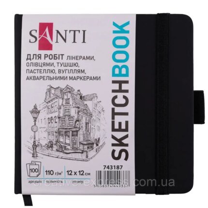 Скетчбук SANTI для графіки, 12х12см, 100 арк., тверда обкладинка PU, 110г/м2, чорний