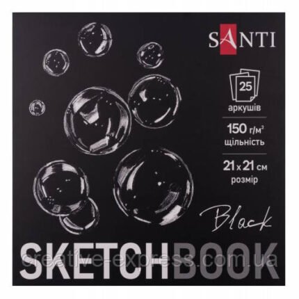 Скетчбук SANTI для графіки, з чорним папером, 21х21см, 25 арк., склейка, 150г/м2