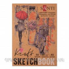 Скетчбук SANTI для графіки, з крафт папером, A5, 50 арк., склейка, 80г/м2