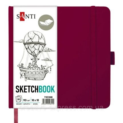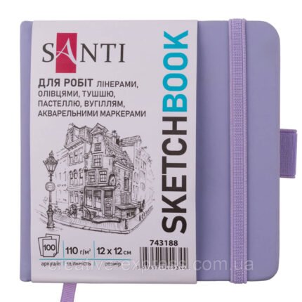 Скетчбук SANTI для графіки, 18х18см, 80 арк., тверда обкладинка PU, 110г/м2, фіолетовий кількість