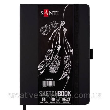 Скетчбук SANTI для графіки, з чорним папером, 16×23см, 56 арк., тверда обкладинка, PU, 145г/м2