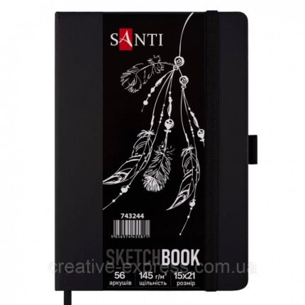Скетчбук SANTI для графіки, з чорним папером, 15×21см, 56 арк., тверда обкладинка, PU, 145г/м2