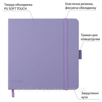 Скетчбук SANTI для графіки, 18х18см, 80 арк., тверда обкладинка PU, 110г/м2, фіолетовий