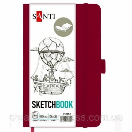 Скетчбук SANTI для графіки, 13х21см, 80 арк., тверда обкладинка PU, 110г/м2, червоний