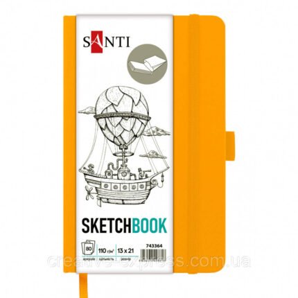Скетчбук SANTI для графіки, 13х21см, 80 арк., тверда обкладинка PU, 110г/м2, жовтий