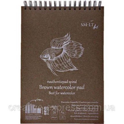 Альбом для акварелі на спіралі AUTHENTIC, A4, 280г/м2, 35л, коричневий колір, SMILTAINIS