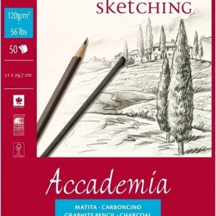 268 грнАльбом для графіки склейка Accademia А4 (21х29,7 см) 120 г/м.кв. 50 аркушів Fabriano Італія