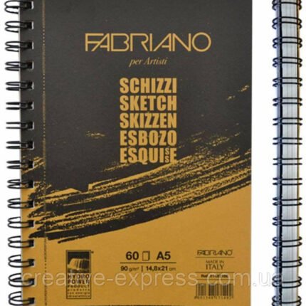 185 грнАльбом для ескізів на спіралі Schizzi Sketch А5 (14,8х21см), 90г/м2, 60л., Fabriano