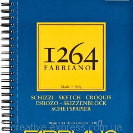 382 грнАльбом на спіралі для рисунку та ескізів 1264 А4, 90г/м2, 120л, слонова кістка, Fabriano