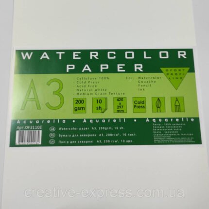 79 грнПапір для акварелі Ofort Standart А2, 1 арк. (200г/м2) OF2101E, 100арк./пач.