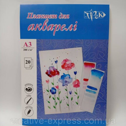 42 грнПапка акварельна А4 (21х29,7 см) фактурний папір 200 г/м.кв. 20 аркушів «Трек» Україна