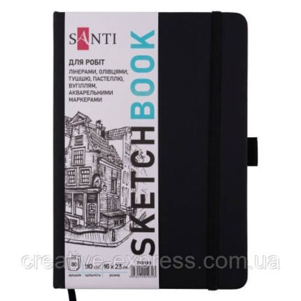 173 грнСкетчбук SANTI для графіки, 16х23см, 80 арк., тверда обкладинка PU, 110г/м2, чорний