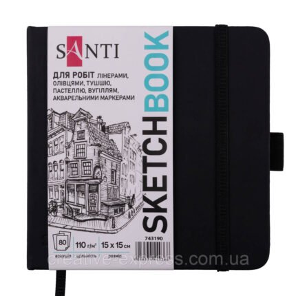 129 грнСкетчбук SANTI для графіки, 15х15см, 80 арк., тверда обкладинка PU, 110г/м2, чорний