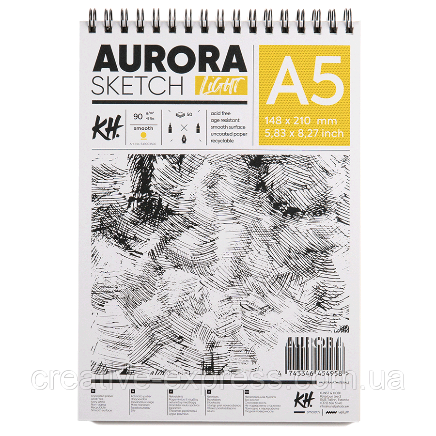 Альбом для ескізів на спіралі, А5 (14,8*21 см), 90 г/м2, 50 л, Aurora