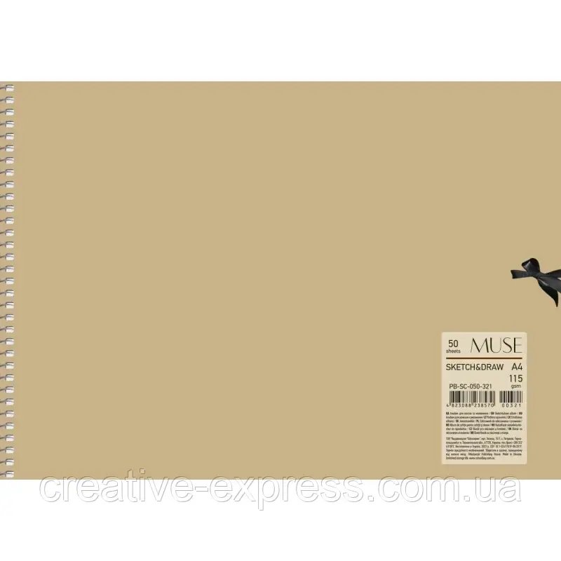 Альбом для ескізів та малювання, на зав’язці, А4/50арк., 115г/м2, крафт, MUSE