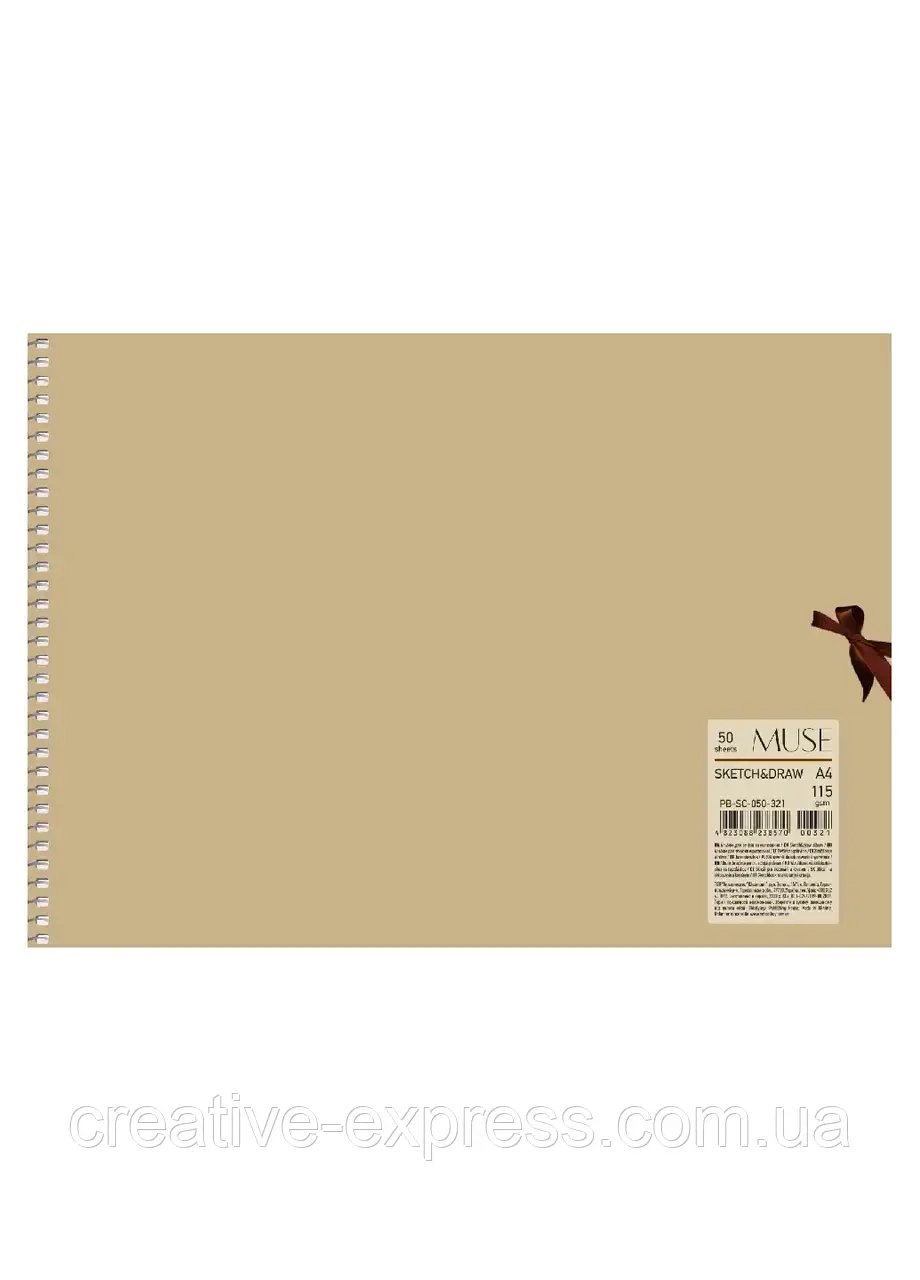 Альбом для ескізів та малювання, на зав’язці, А5/50арк., 115г/м2, крафт, MUSE