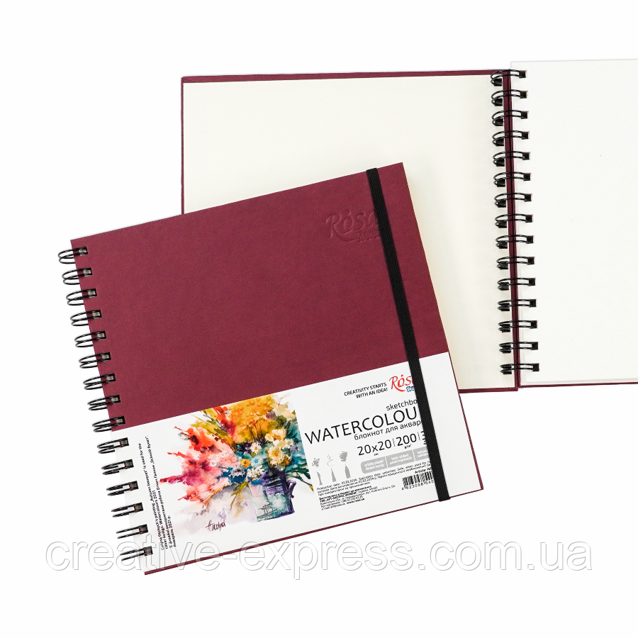 Блокнот для акварелі на спіралі Watercolor by Smiltanis, 20х20 см, 200г/м2, 30 л, папір білий, Бордо