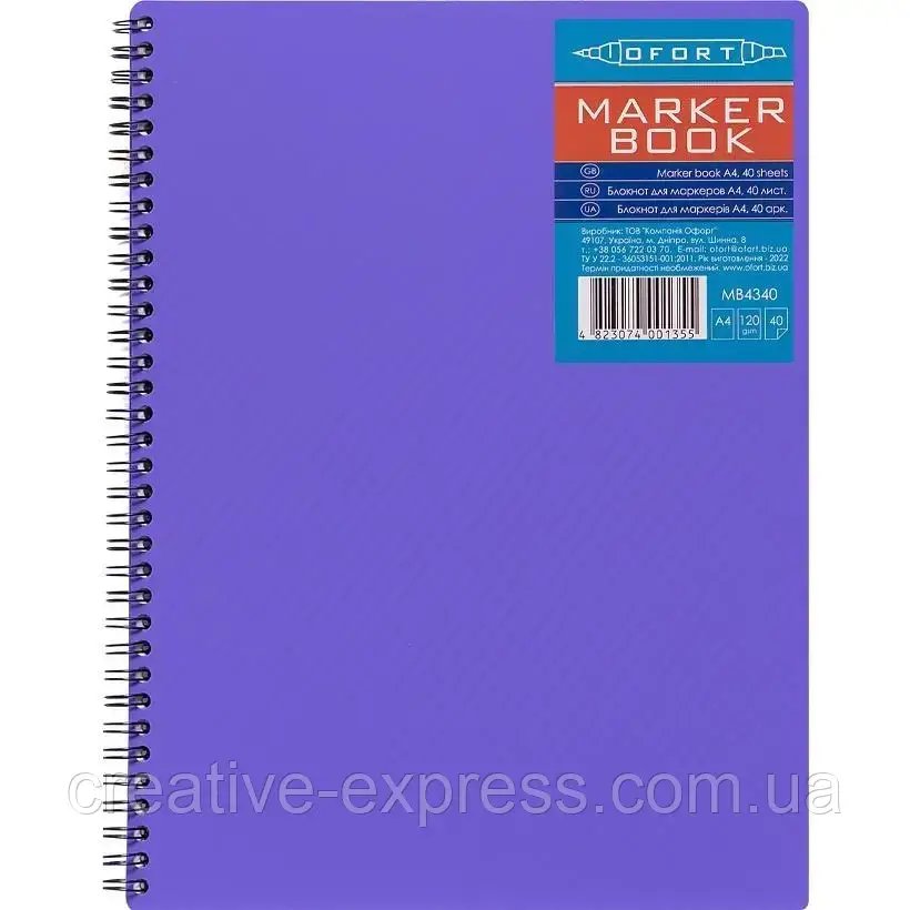 Блокнот для маркерів А4 (295х218мм) на спір. 40арк пласт.обкл. (120 г/м2), MB4340