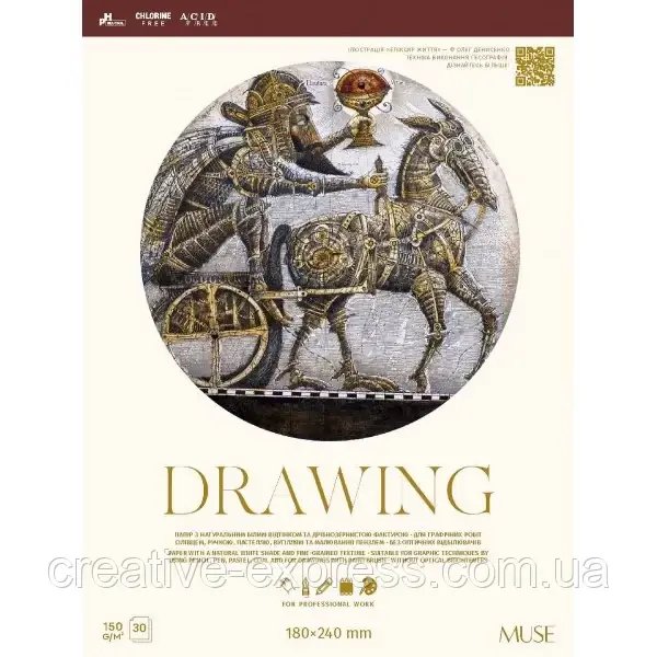 Блок для малювання, 180×240 30арк., 150г/м2, MUSE