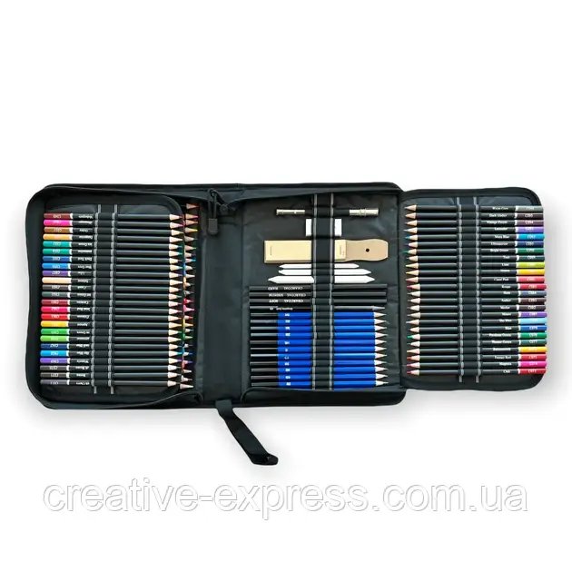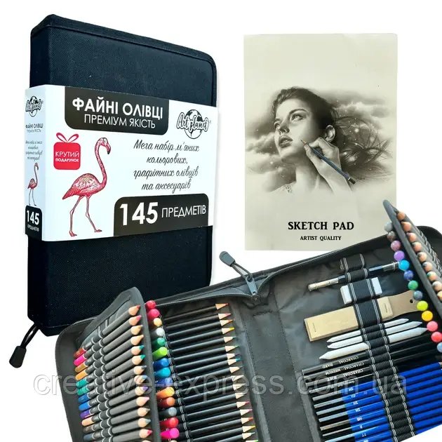 Кольорові графітні олявці 145 предметів у нейлоновому чохлі Art Planet “Фламінго”
