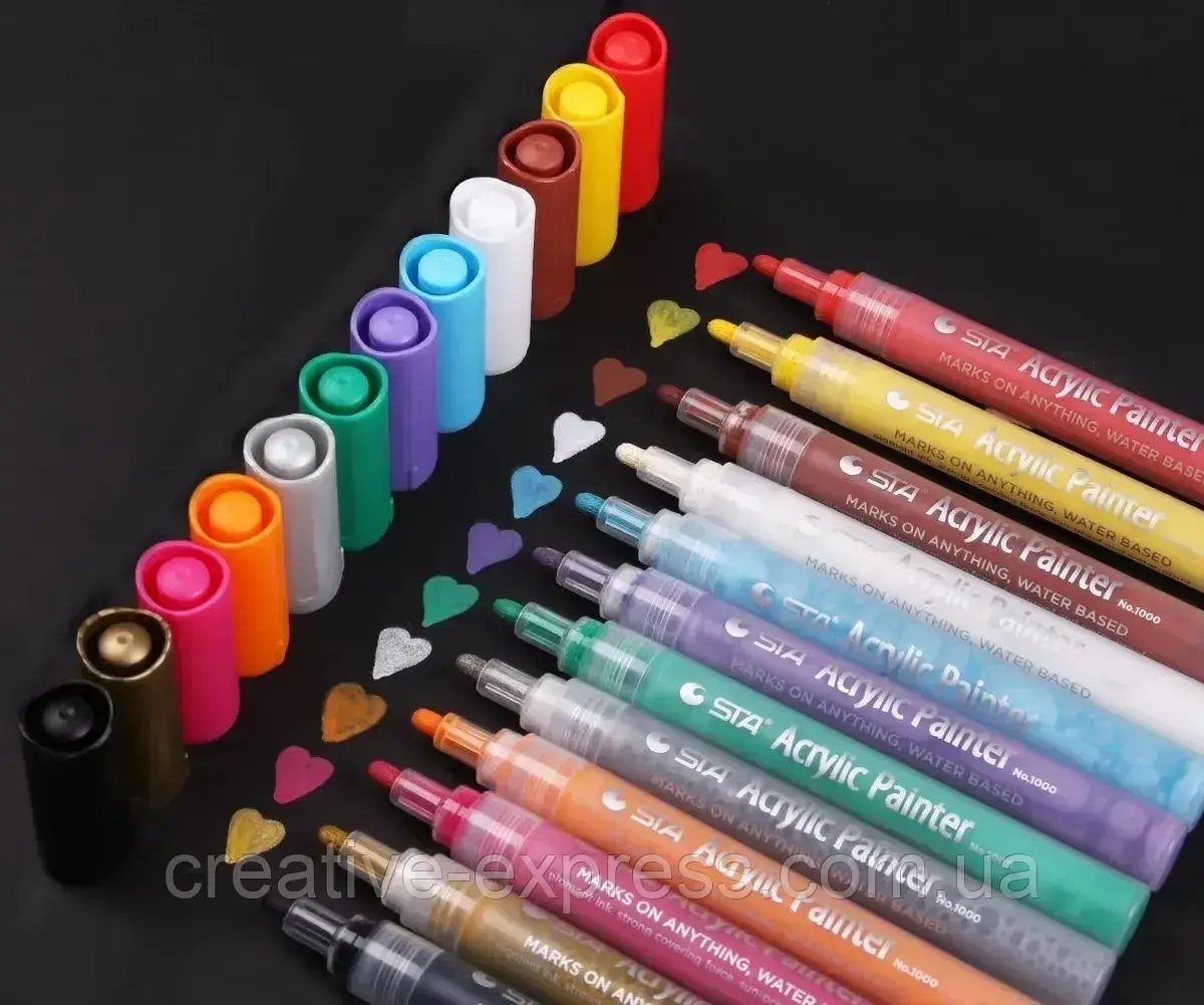 Набір акрилових маркерів 24кольори SТАпреміум (універс.для скла, дерева, тканини, кераміки)